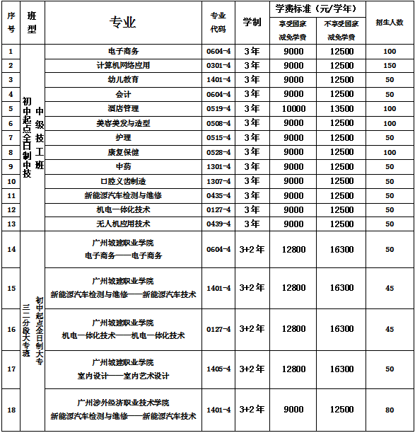 清远市南方技工学校2025招生主要内容